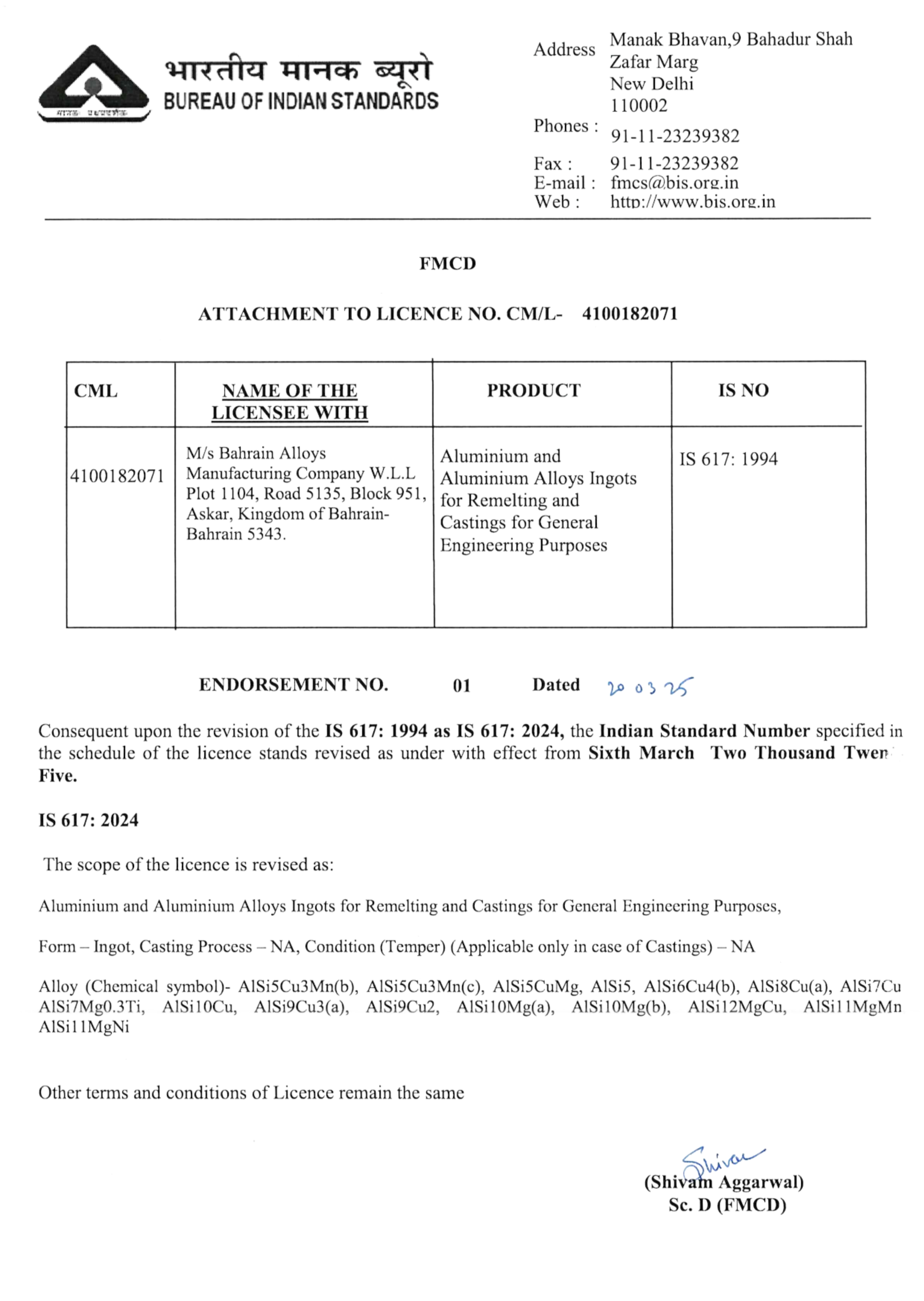 Since its inception in 1996, BAMCO has become a recognized quality supplier of foundry ingots and master alloys, with all products manufactured to international standards. BAMCO is managed by a team of highly experienced and qualified personnel and operates a Total Quality Management System registered under ISO 9001:2015 through the British Standards Institute. This system is regularly audited and accredited to meet rigorous quality requirements.
